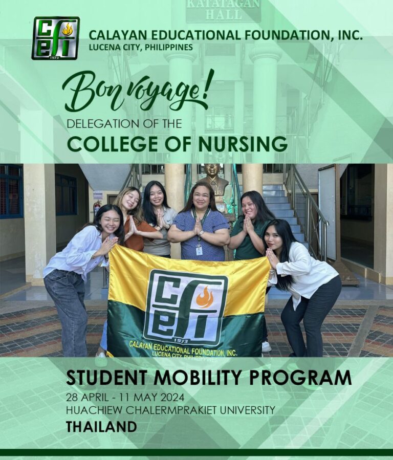 Godspeed to the delegation of the College of Nursing headed by its dean Dr. Wilma Rivadenera, as they embark on a journey to our partner institution Huachiew Chalermprakiet University (HCU) in Thailand for a month-long training from April 28 to may 11. This training is part of the International Student Mobility Program formed by CEFI and HCU.
