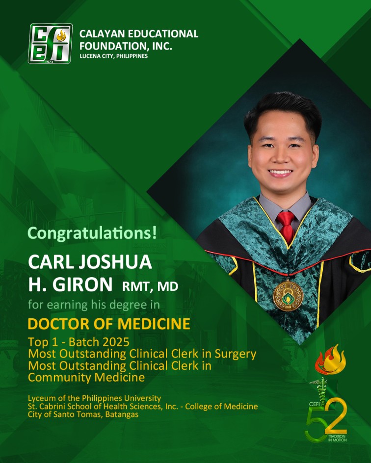 Congratulations! Ms. Deedrey Marie Medenilla Congratulations to Ms. Deedrey Marie Medenilla (CEFI SHS Batch 2020) for graduating Cum Laude in BS Nursing at SLSU Gumaca. Cheers! Recent Posts